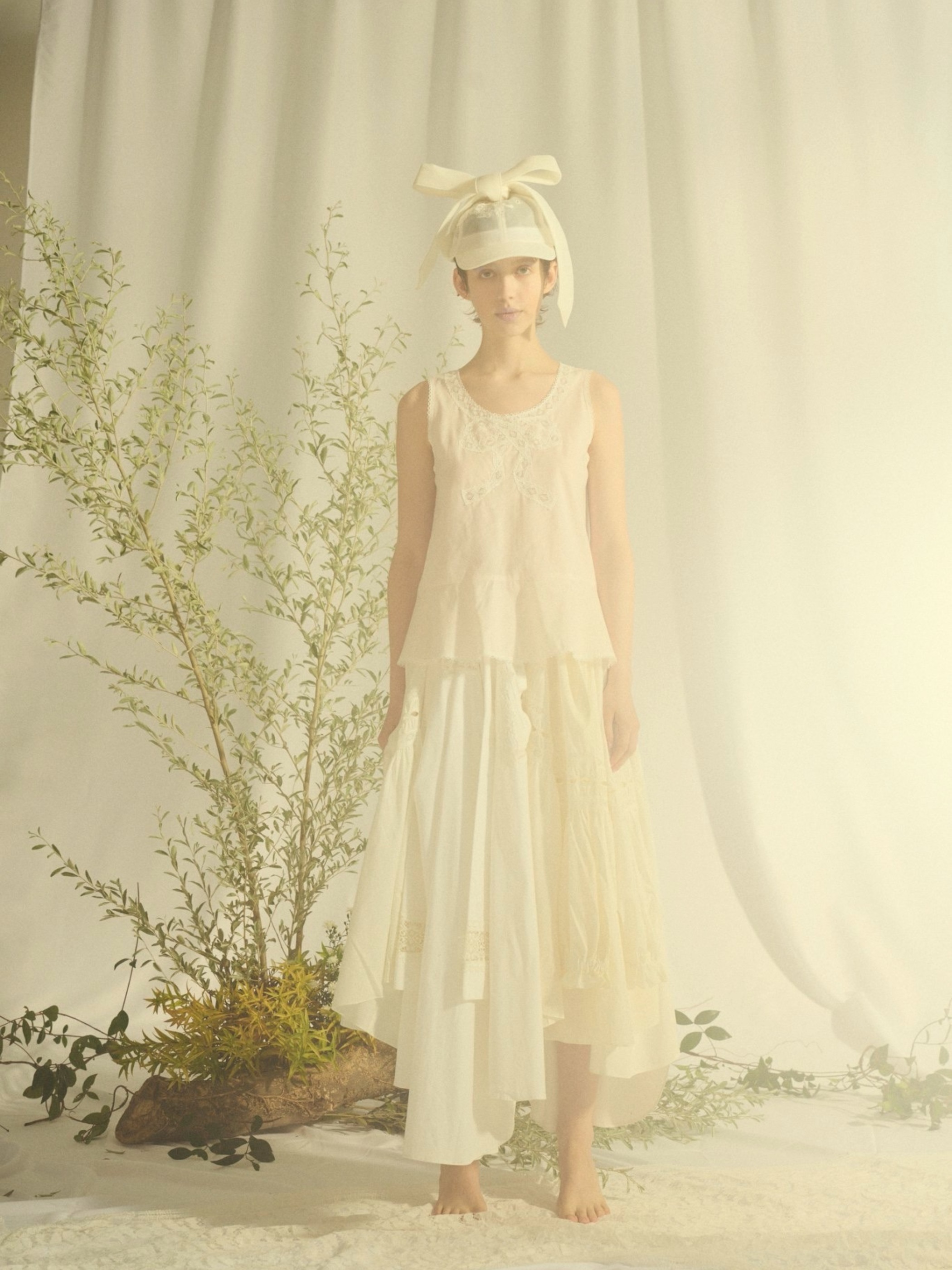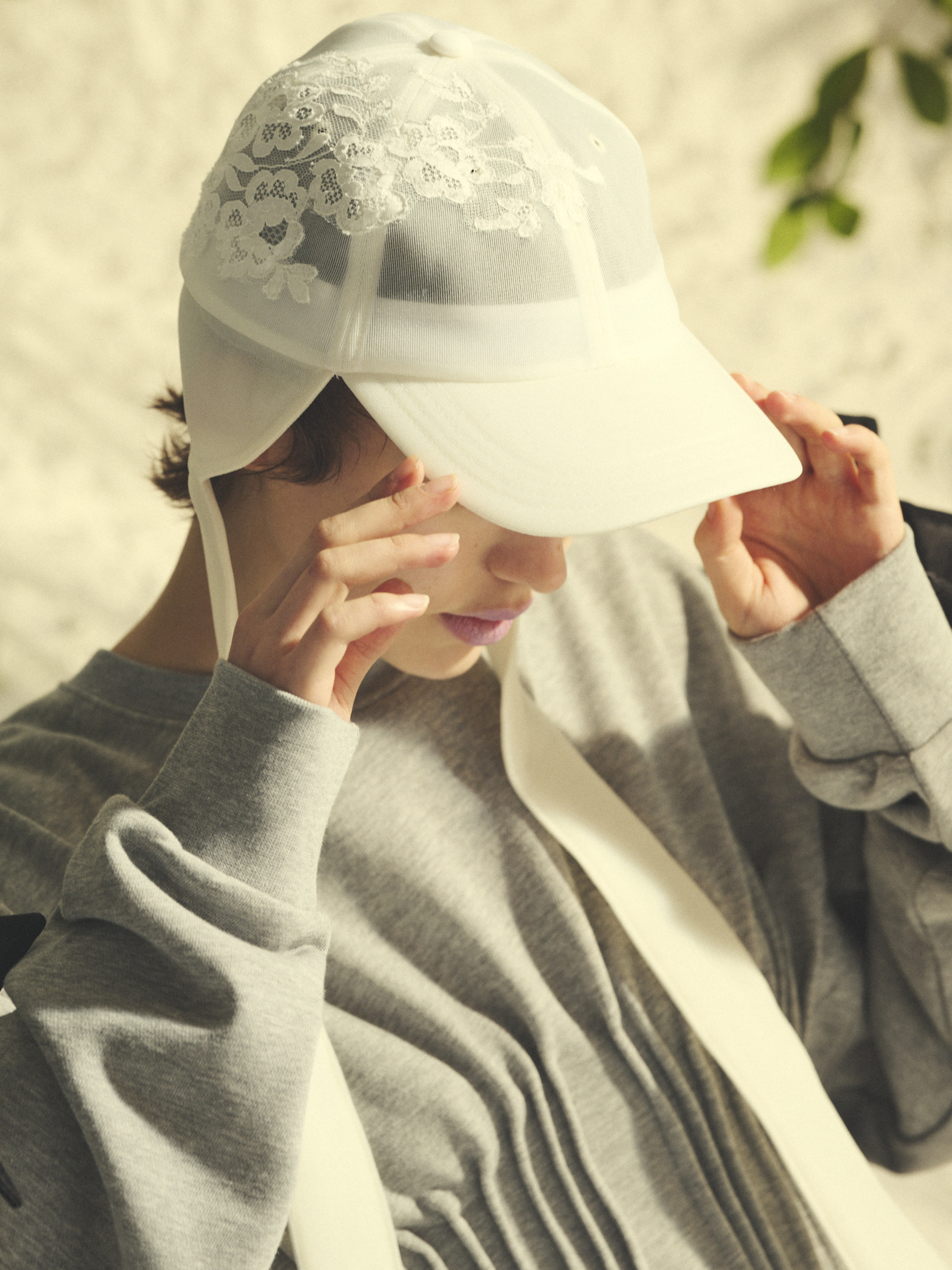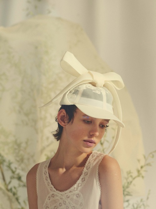 垂れた耳の部分を上に持ち上げて頭の上でリボンで結べば、スポーティーさの中にロマンティックをプラスした唯一無二なスタイルが完成。