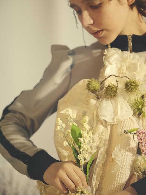 overlaceらしい立体感が魅力の構築的なお袖と、スポーティーな要素が相まった新鮮な1着です。