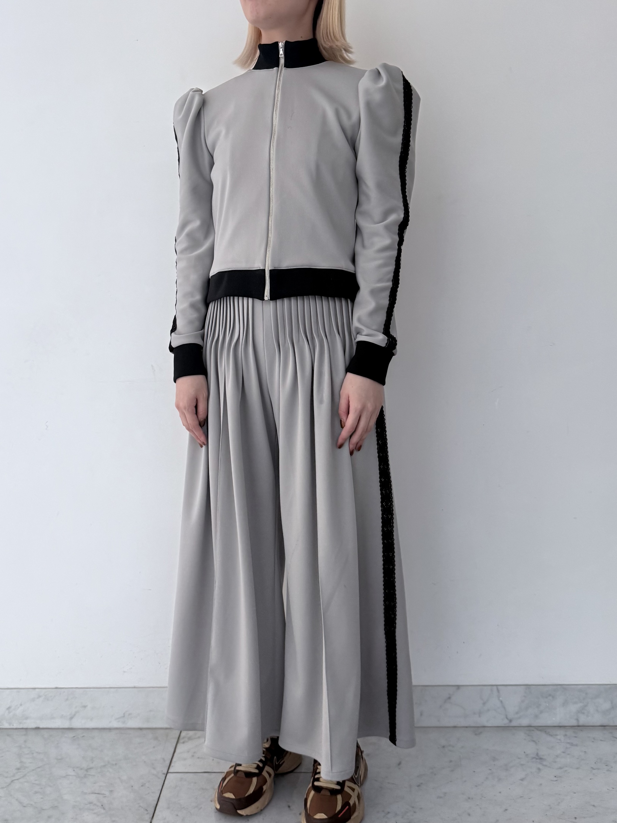 ジャージ素材でお仕立てした機能性とロマンティックさが融合したトラックジャケット。