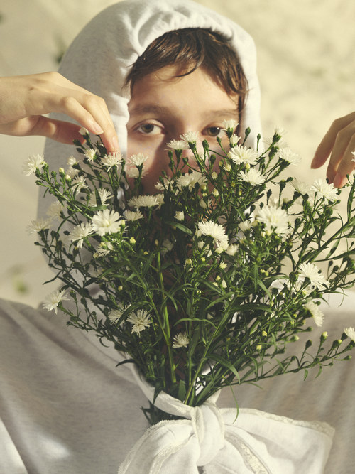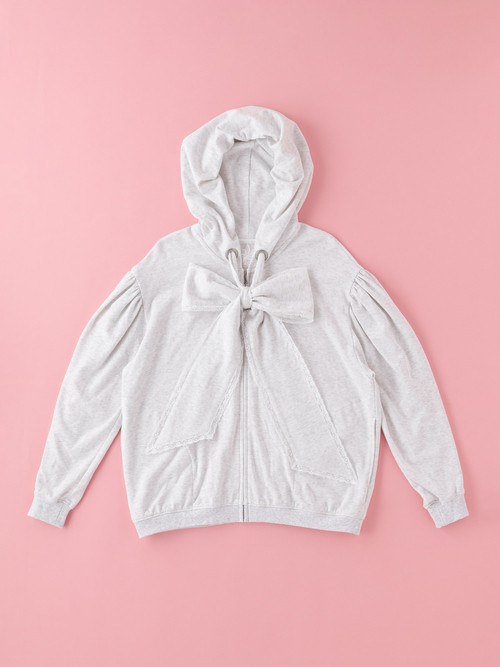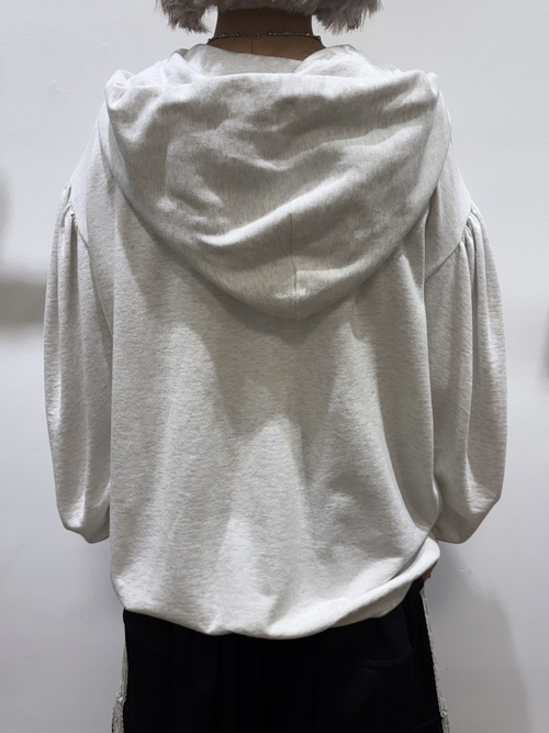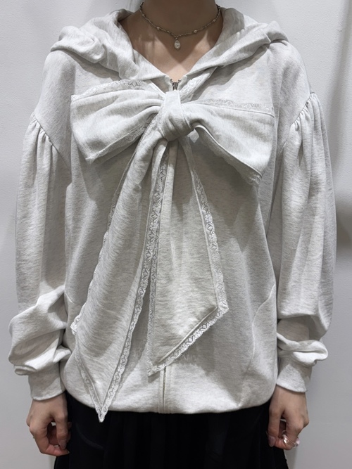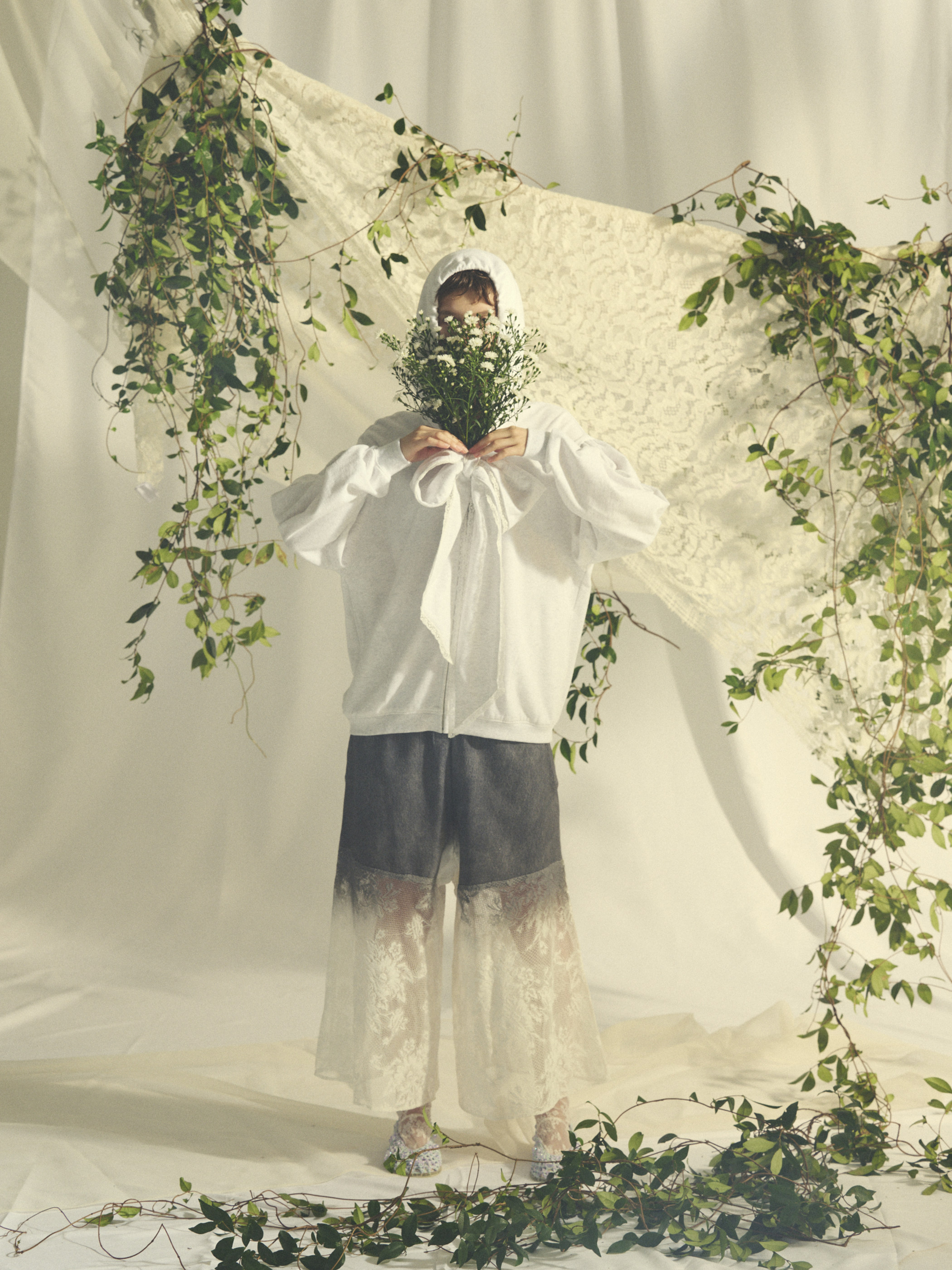 カジュアルな佇まいのベーシックなフーディーに、overlaceらしいロマンティックなスパイスを加えました。