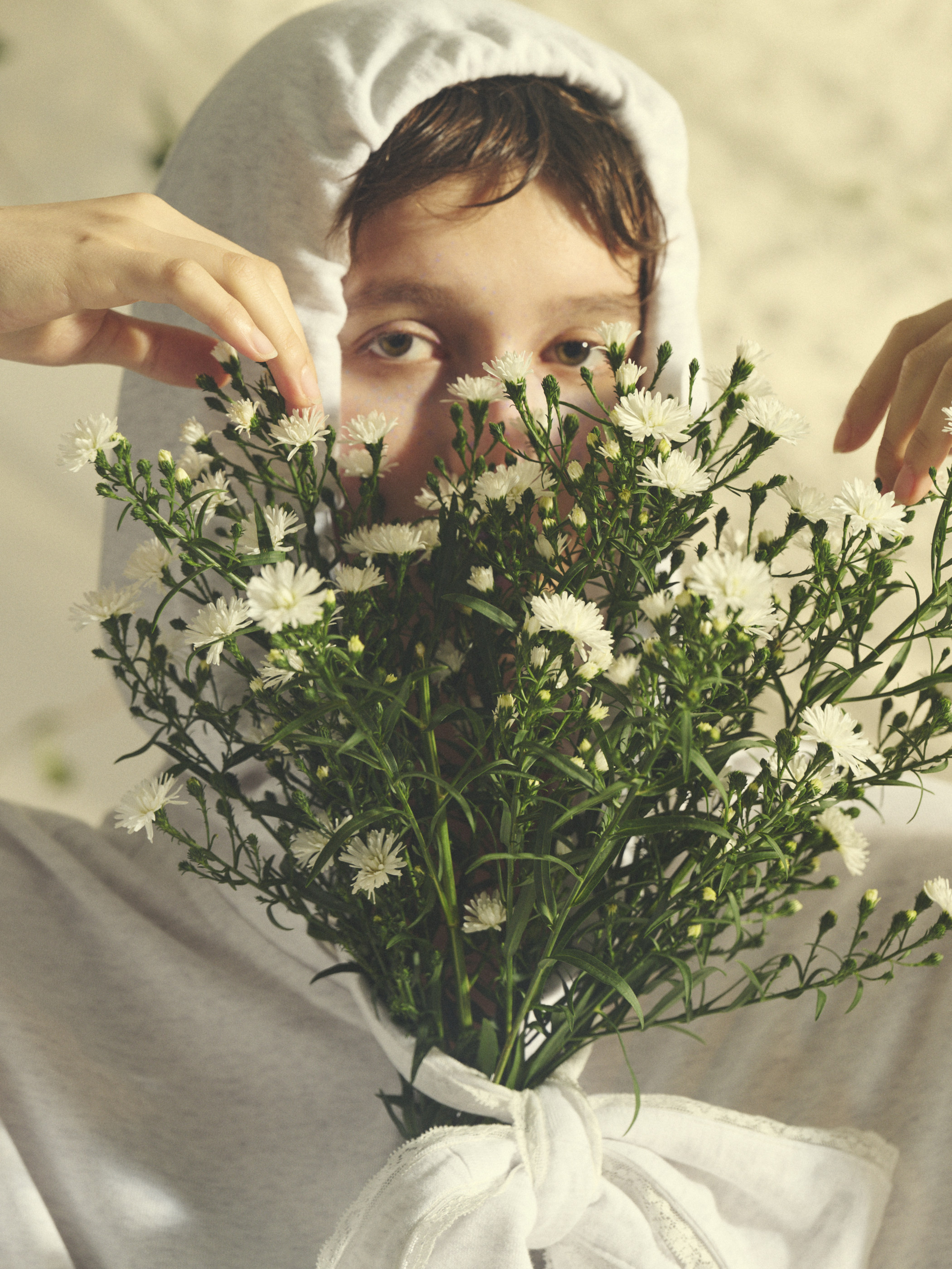 心地よい肌触りの生地でお仕立てした愛らしいフーディー。