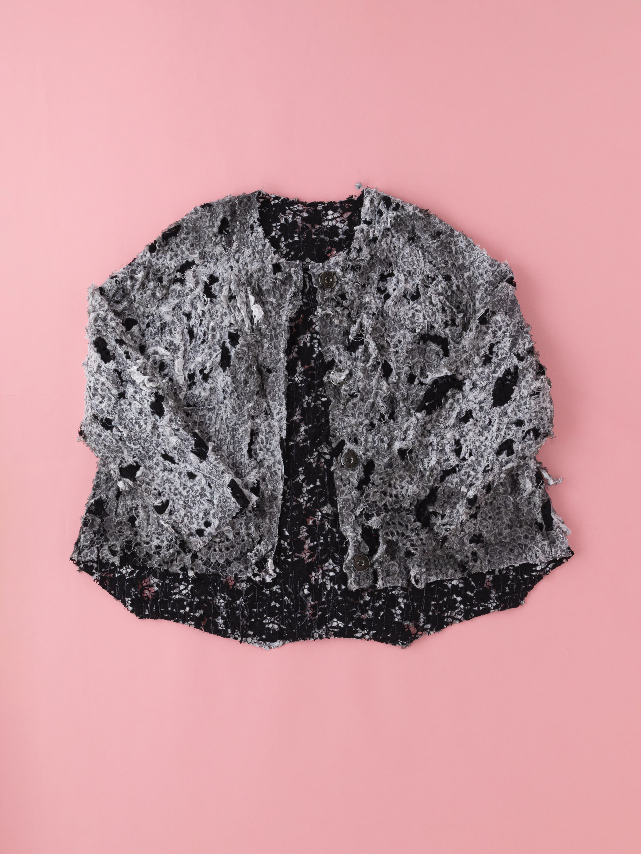さまざまなレースを重ねた1枚のスペシャルなテキスタイルを作り上げました。