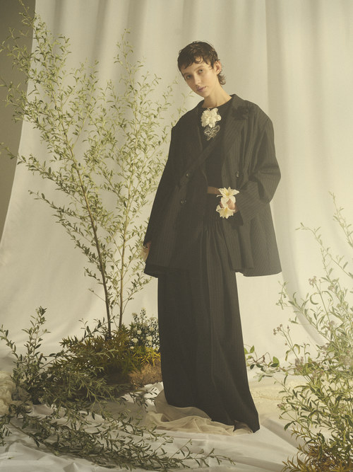 クチュールテクニックを日常的に味わえるような機能性も兼ね備えた着心地となっており、1日の終わりまでストレスなくお召しいただけます。とろみ感のある素材を使用しているため、優雅な雰囲気も魅力のひとつです。