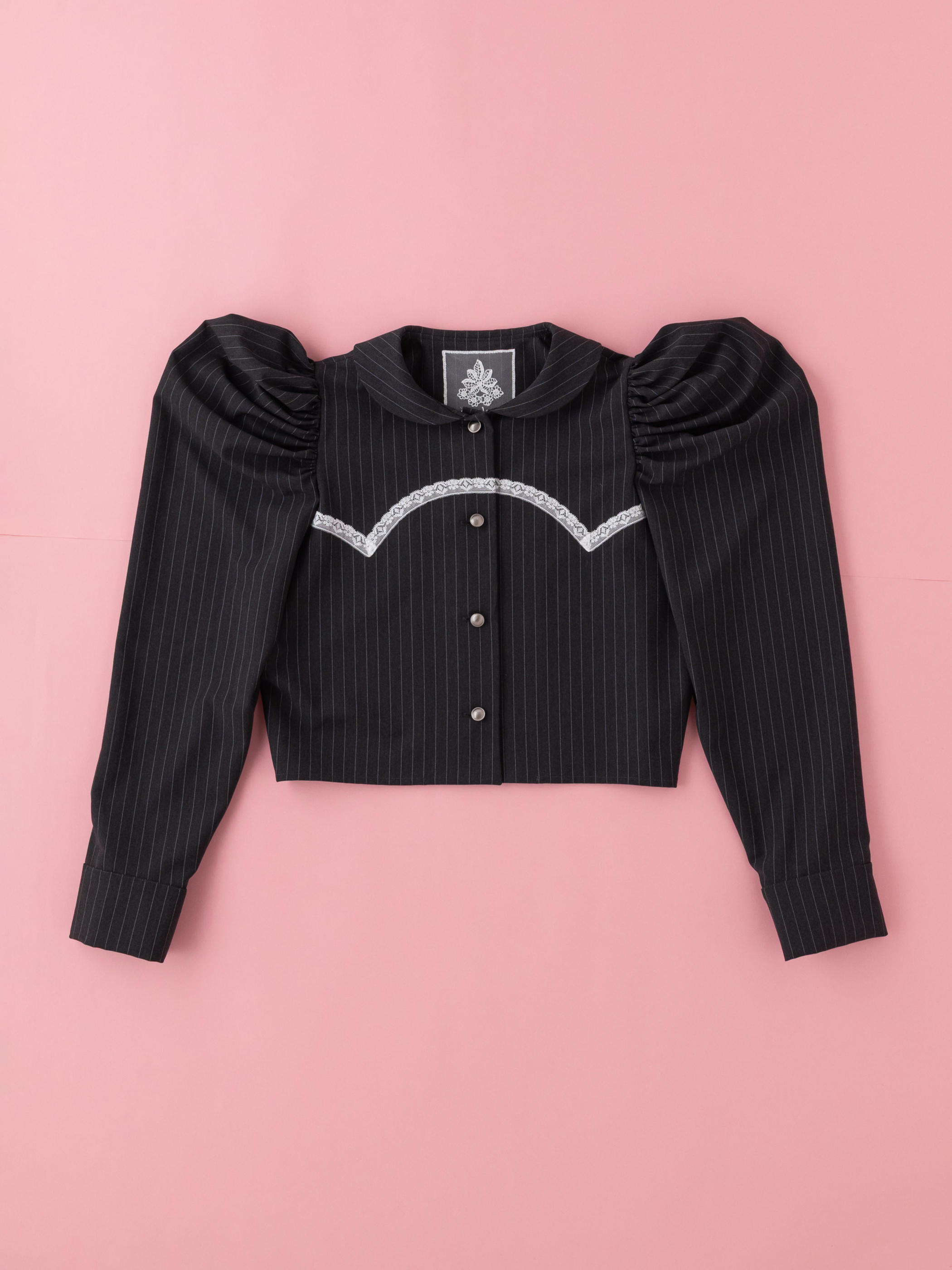 衿もとは柔らかな印象を意識した曲線を描き、静かな存在感を感じるよう仕上げました。そんなゆるやかなラインとリンクさせてあしらったレースは大胆にほどこし、上品なフェミニンさが漂います。
