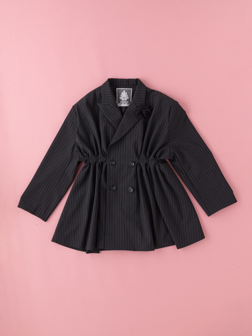 マニッシュな雰囲気を纏いながらも、ボリューム感とウエストのシェイプが優美なジャケット。