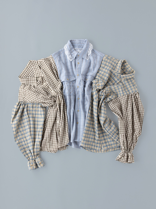 2着のシャツでお仕立てしたお袖に特徴のあるシャツ。