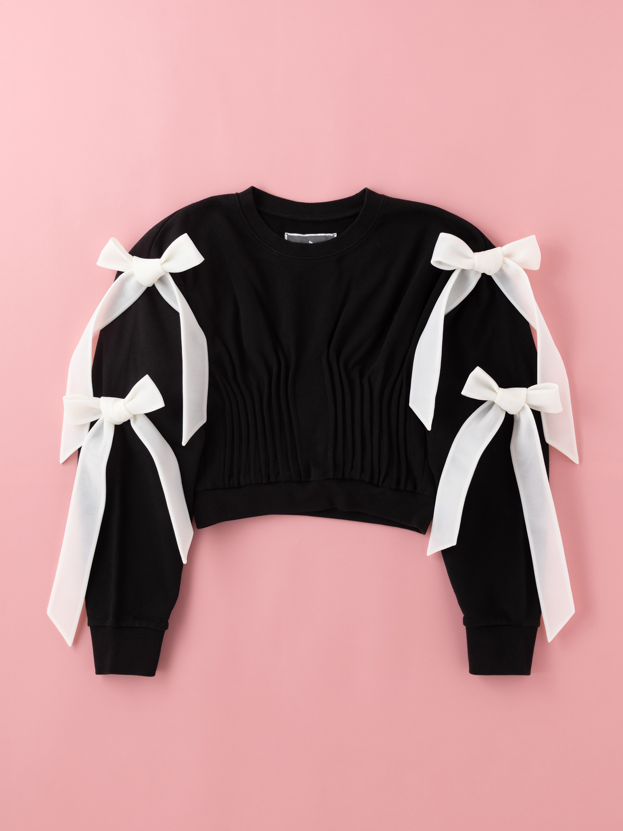大きめな愛らしいリボンが4つ。お袖を通すたびに1日の始まりを心穏やかに迎え入れてくれます。