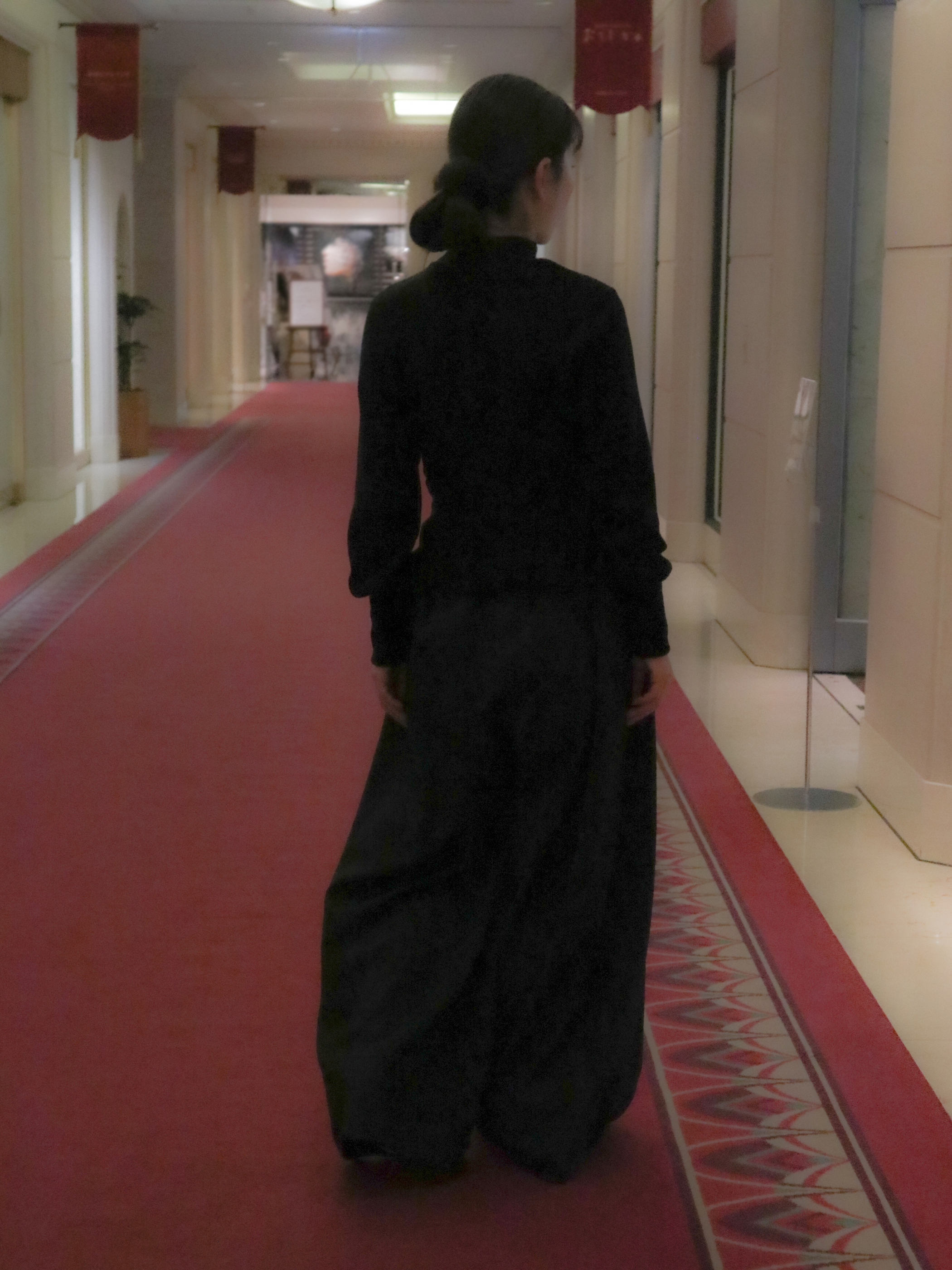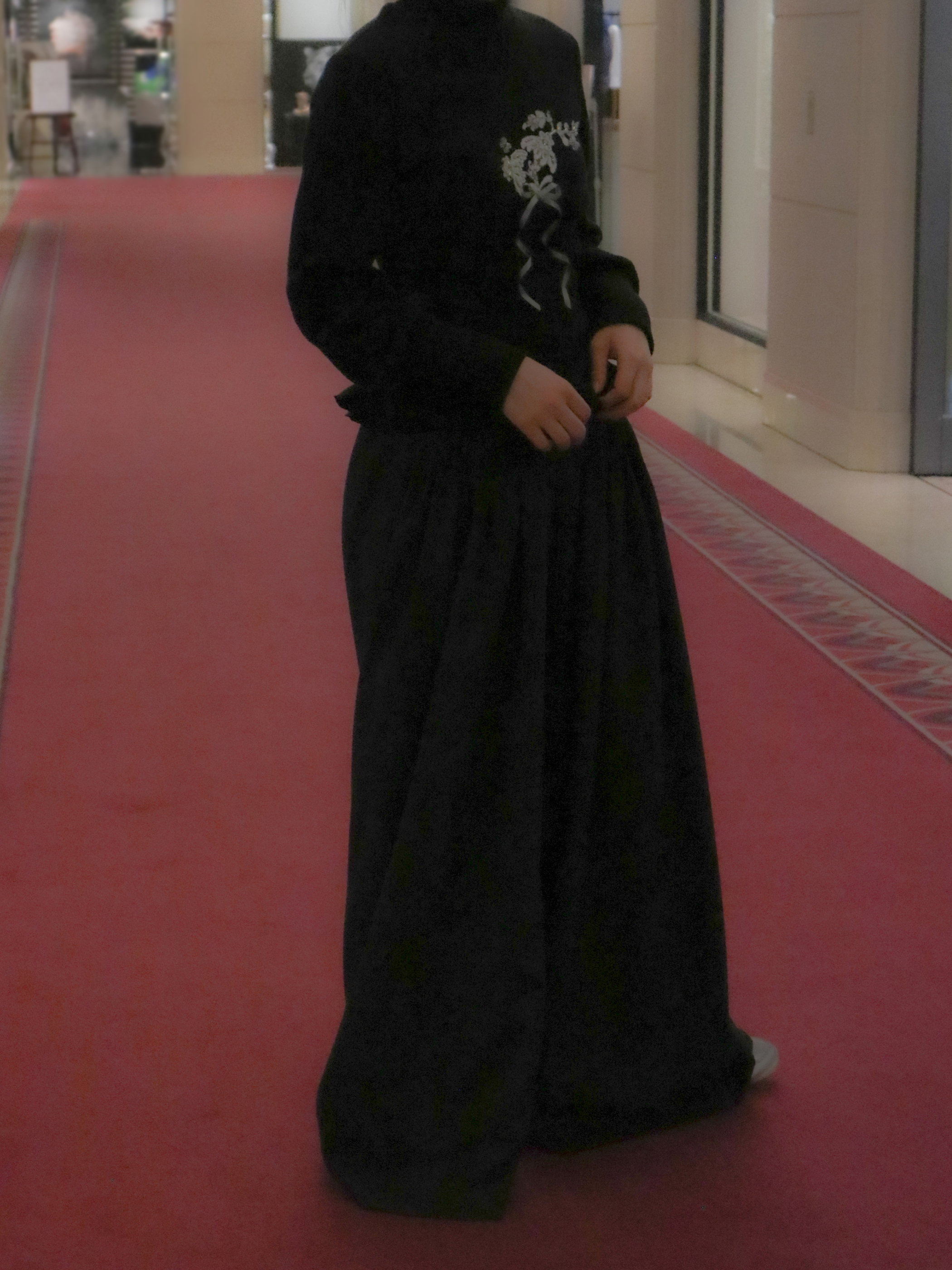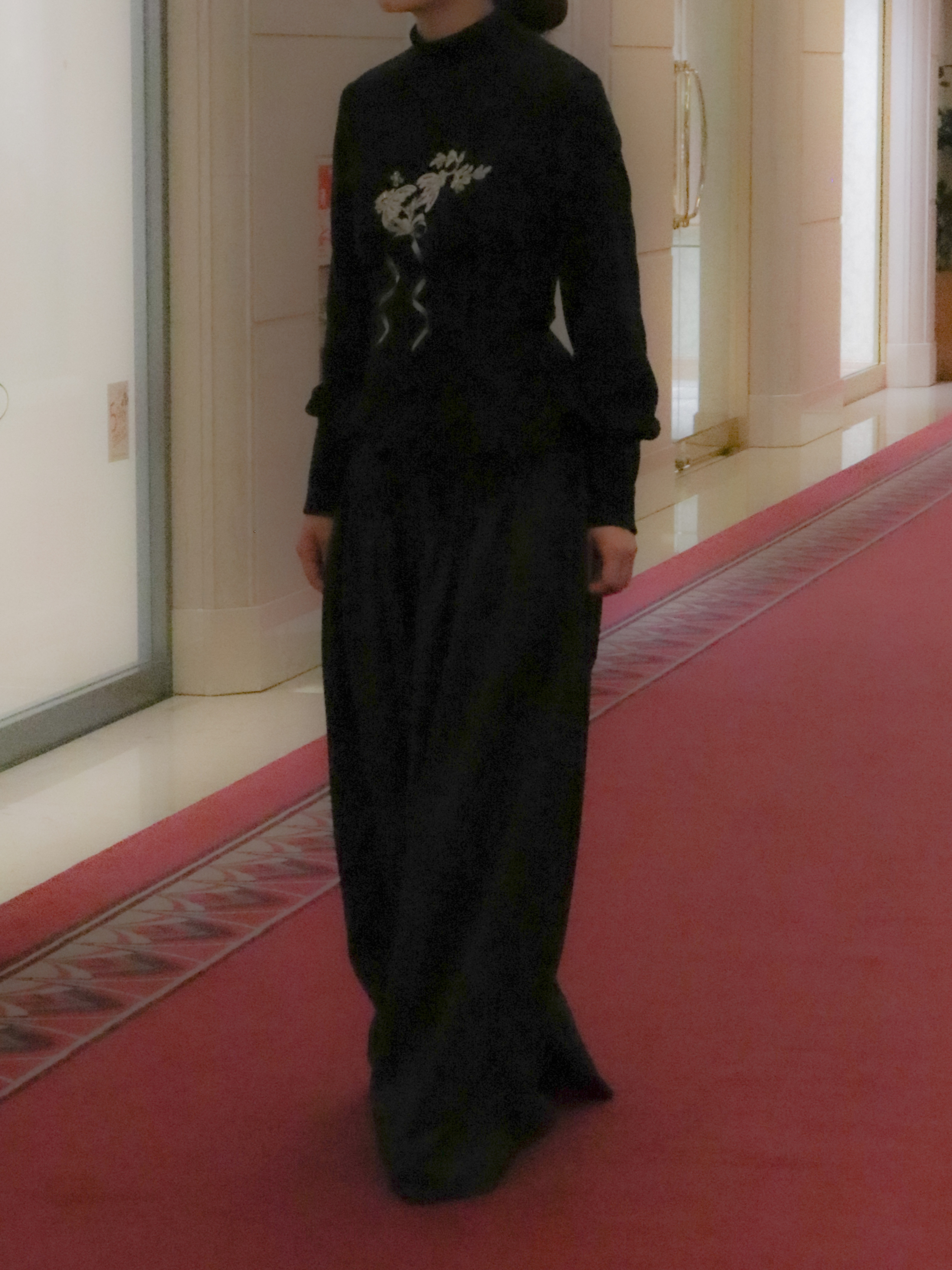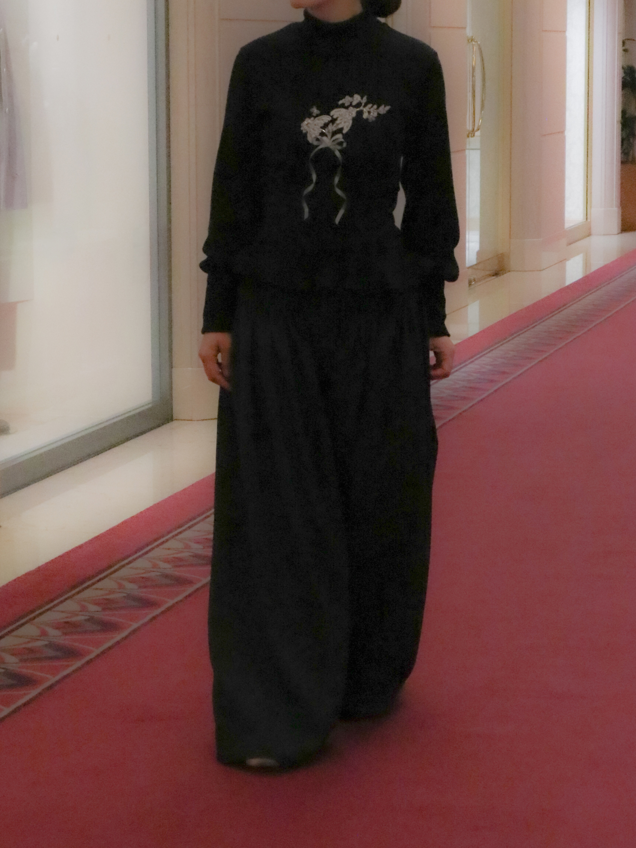 裾にはほんのりとフリルを効かせ、やわらかな動きをプラス。